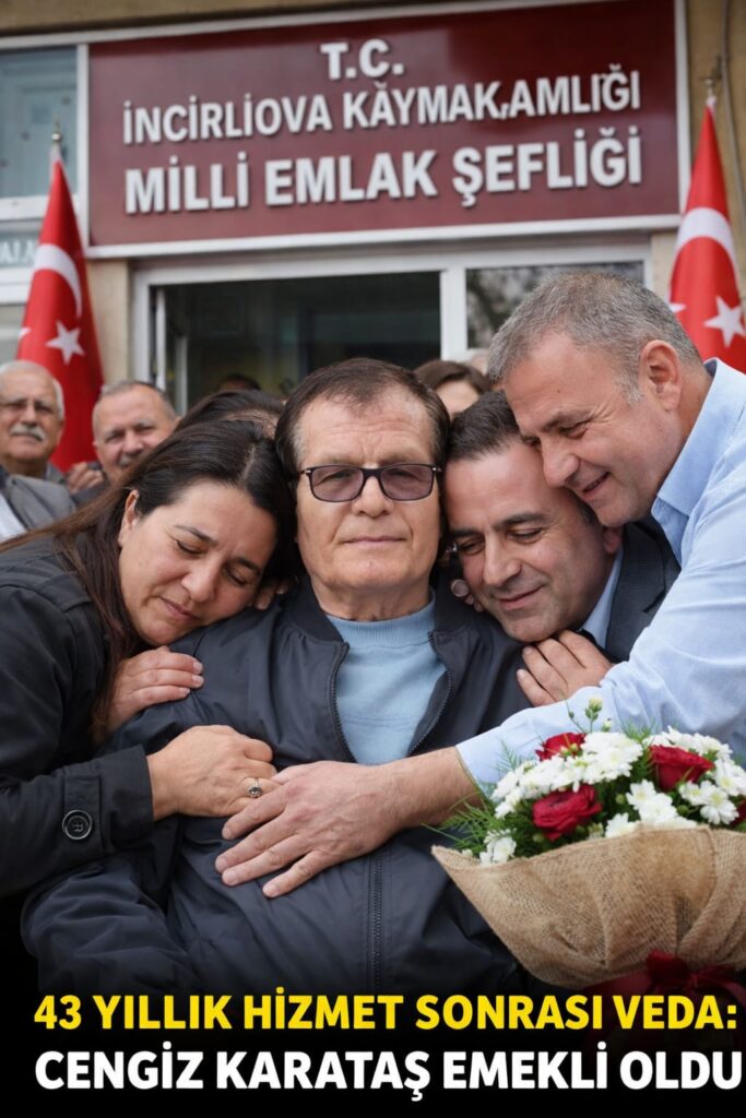 İncirliova’da uzun yıllar kamu hizmetinin en önemli yapı taşlarından biri olan Milli Emlak Şefliği’nde görev yapan Cengiz Karataş, 43 yıllık meslek hayatını geride bırakarak emekliliğe adım attı. 30 Mart 2026 tarihi itibariyle yaş haddinden emekliye ayrılan Karataş, hem meslektaşları hem de ilçe halkı tarafından saygı ve takdirle uğurlandı.