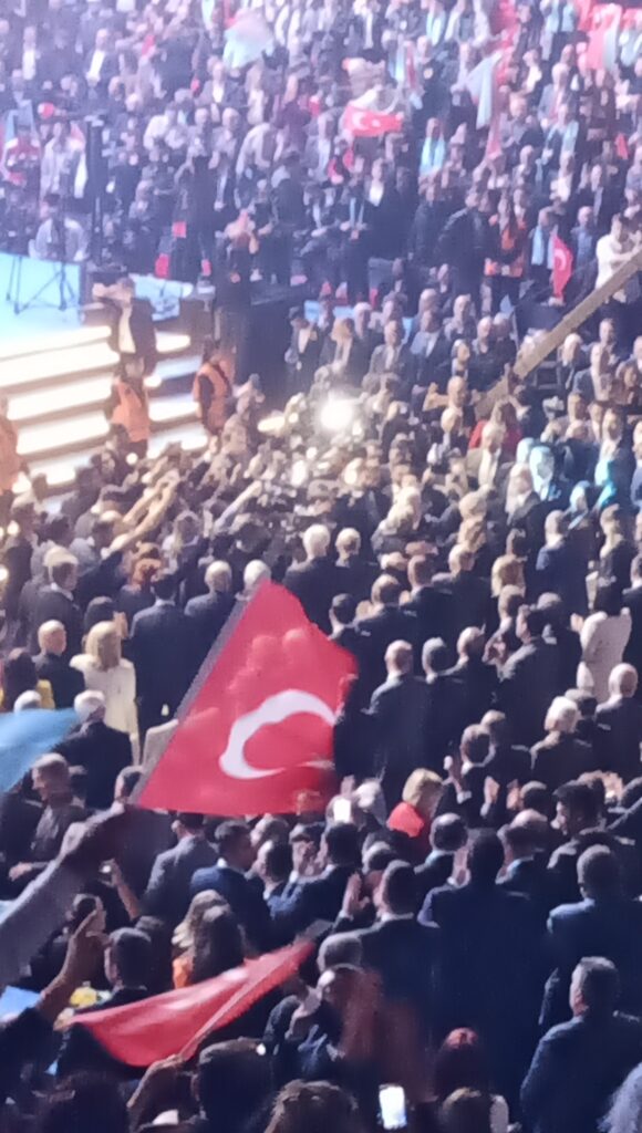 “İktidara doğru Dervişoğlu” ve “Türklüğün gururu Dervişoğlu” vb. Sloganlarla salonu dolduran binler haykırdılar. Barkovizyonda hazırlanan görseller konuşmadan önce izletildi.