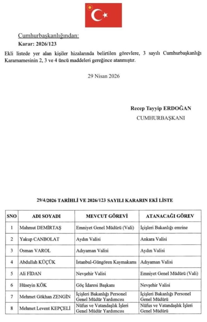 Cumhurbaşkanı Recep Tayyip Erdoğan’ın imzasıyla yayımlanan Valiler Kararnamesi kapsamında Aydın Valiliği’nde önemli bir görev değişimi gerçekleşti. Karar doğrultusunda, Adıyaman Valisi Dr. Osman Varol Aydın Valisi olarak atanırken, mevcut Vali Yakup Canbolat ise Ankara Valiliği görevine getirildi.