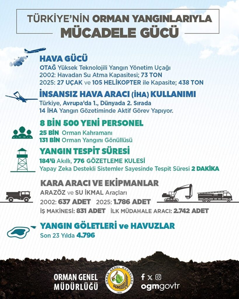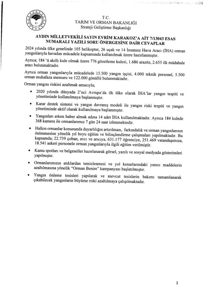 Orman yangınlarına karşı alınan önlemlerle ilgili geçen yıl Tarım ve Orman Bakanlığı’na verdiği soru önergesini hatırlatan Karakoz, “Tarım ve Orman Bakanı Yumaklı önergemize verdiği cevapta 2024 yılında ülke genelinde 26 yangın söndürme uçağı ve 105 helikopter ile orman yangınlarıyla mücadele edildiğini açıklamıştı. Orman Genel Müdürlüğü’nün 2025 yılı için paylaştığı verilere bakıyoruz; 27 yangın söndürme uçağı, 105 helikopter, 1.786 arazöz ve 25.000 personelin yangına müdahale için hazır olduğunu söylüyorlar. İktidar bu verileri paylaşırken 2002 yılı ile kıyaslama yapıyor, ama son 1 yılda hava gücüne sadece 1 tane yangın söndürme uçağı eklenmiş. Bunlar da var mı yok, kiralık mı, devletin mi o da belirsiz.” dedi.