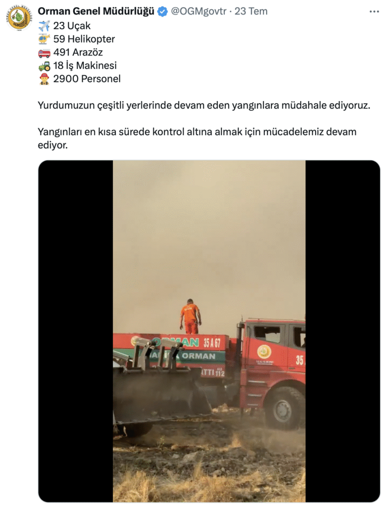 CHP’li Evrim Karakoz var olduğu açıklanan uçak ve helikopter sayısı ile yangınlara müdahalede kullanılan uçak ve helikopter sayılarındaki çelişkilere dikkat çekerek, “23 Temmuz 2025 tarihinde Orman Genel Müdürlüğü’nün sosyal medya hesaplarından yapılan paylaşımda yurdun çeşitli yerlerinde devam eden yangınlara 23 uçak, 59 helikopter, 491 arazöz ve 2.900 personel ile müdahale edildiği açıklanmış. Açıklanan bu sayılar havadan müdahalede 2024 yılının da gerisinde olunduğunu gösteriyor. Ya bu bakanlığın gerçekten 27 uçağı ve 105 helikopteri yok ya da ülkenin neredeyse her bölgesinde ciddi yangınlar yaşanıyorken Tarım ve Orman Bakanlığı yangınlara tam kapasite müdahale etmiyor. Şu kadar uçağımız, şu kadar helikopterimiz var diyorsunuz, Orman Yangınlarıyla Mücadele Gücü diye reklam tanıtım yapıyorsunuz, bu gücü neden kullanmıyorsunuz?” dedi.