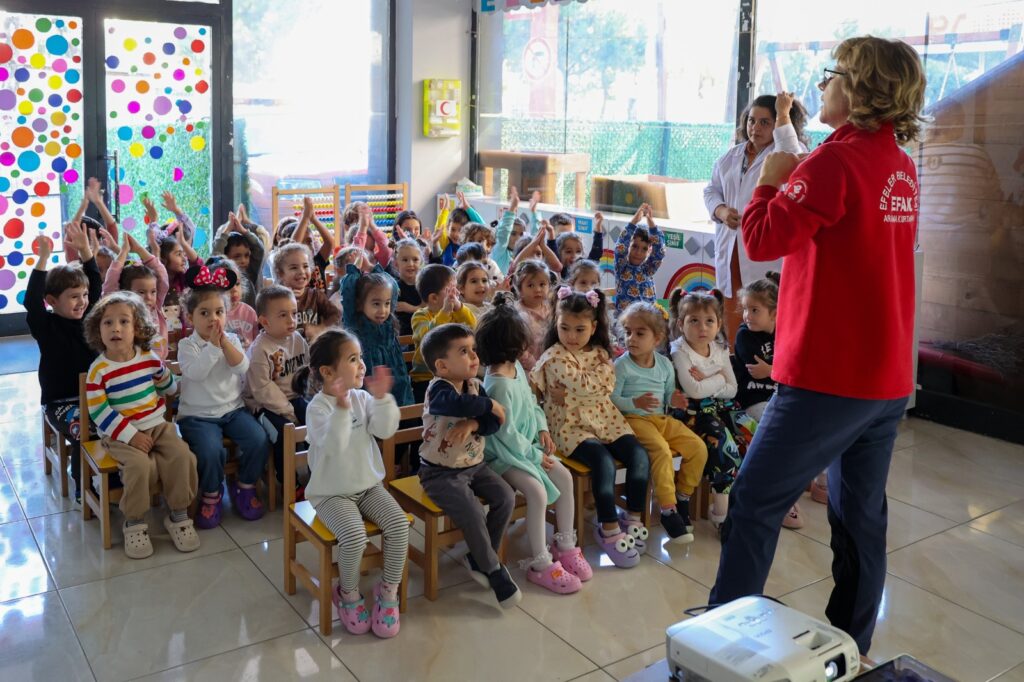 Efeler Belediyesi Gündüz Bakımevleri, okul öncesi alandaki güçlü eğitim kadrosu ve nitelikli programlarının yanı sıra, düzenli olarak gerçekleştirdiği eğitim ve tatbikatlarla da çocukların ve eğitimcilerin farkındalığını artırmaya devam ediyor.