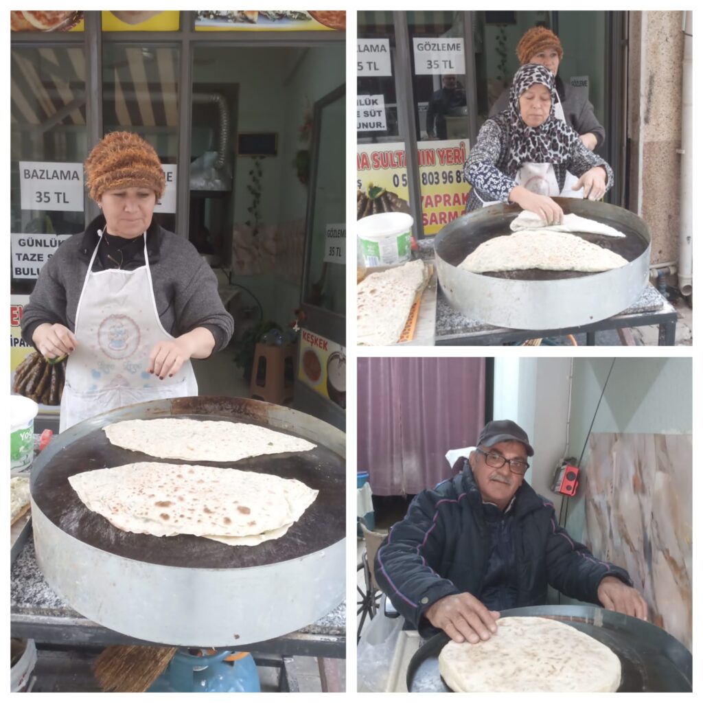 Aydın’ın İncirliova İlçesi Cumhuriyet Mahallesi Ortaokul Caddesi 8 numarada  hizmet veren gözlemeci Selma Sultan enfes gözleme ve bazlama yapmaktadır.