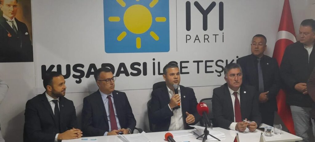 İYİ Parti Kuşadası İlçe Başkanlığı’nda gerçekleşen basın toplantısına İYİ Parti Aydın İl Başkanı Ahmet Ertürk, İYİ Parti Kuşadası İlçe Başkanı Behçet Alp ve ilçe yönetimi, İYİ Partili meclis üyeleri, İYİ Parti Kuşadası Medya ve Tanıtım Başkanı Fikret Erol Avcı ve partililer katılım gösterdi. Zafer Partisi Belediye Başkan adayı Mehmet Karamercan’ın İYİ Parti saflarına katılım töreni ile başlayan basın toplantısında, Mehmet Karamercan’ın rozeti İl Başkanı Ahmet Ertürk tarafından basın önünde takıldı.