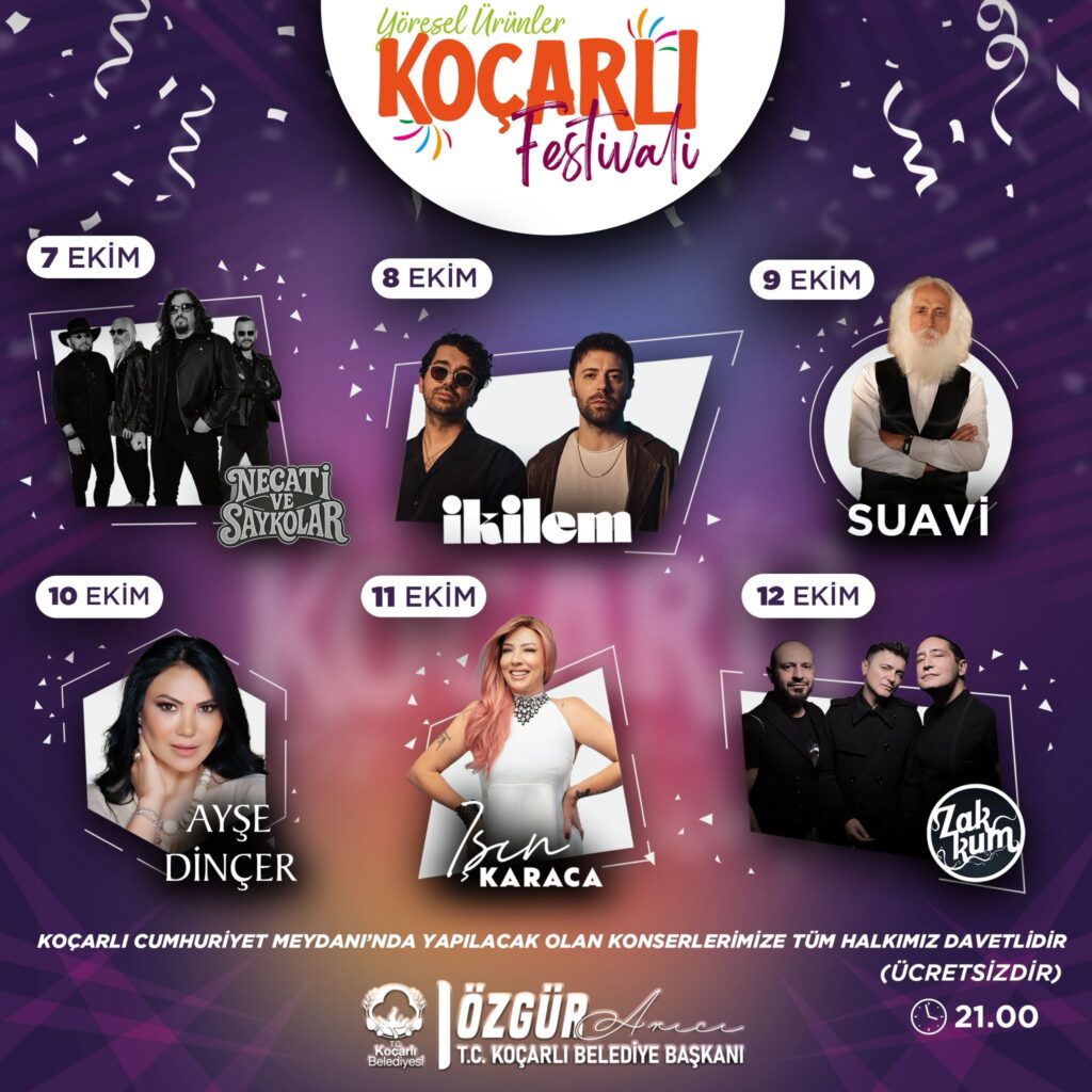 Koçarlı, 7–12 Ekim tarihleri arasında müzik ve eğlencenin merkezi olacak. Hem Koçarlı halkı hem de çevre illerden gelecek ziyaretçiler, dolu dolu bir festival programıyla unutulmaz bir hafta yaşayacak.