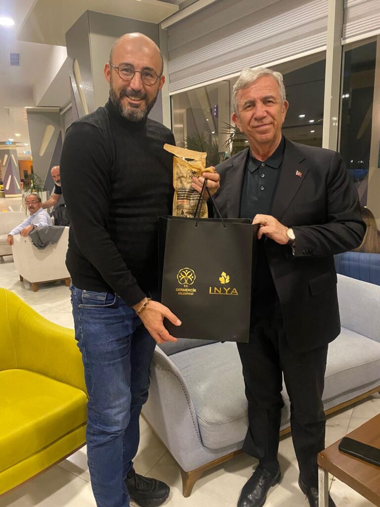 Tarihi Kentler Birliği Birlik Meclisi Olağan 2. Toplantısının ardından Ankara Büyükşehir Belediye Başkanı ve Tarihi Kentler Birliği Başkanı Mansur Yavaş ile bir araya gelen Germencik Belediye Başkanı Burak Zencirci Yavaş’a nezaketi ve iyi dilekleri için teşekkür etti. Zencirci “Tarihi Kentler Birliği Başkanı ve Ankara Büyükşehir Belediye Başkanımız Sn. Mansur Yavaş’a Germencik’imizin tarımsal zenginliklerini içeren İNYA markamızın ürünlerini takdim ettik. İncirimizi tattırdık, tam not aldık.İyi dilekleri, güzel sohbeti ve samimiyeti için teşekkürlerimi sunuyorum.” Dedi.