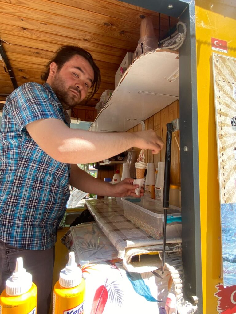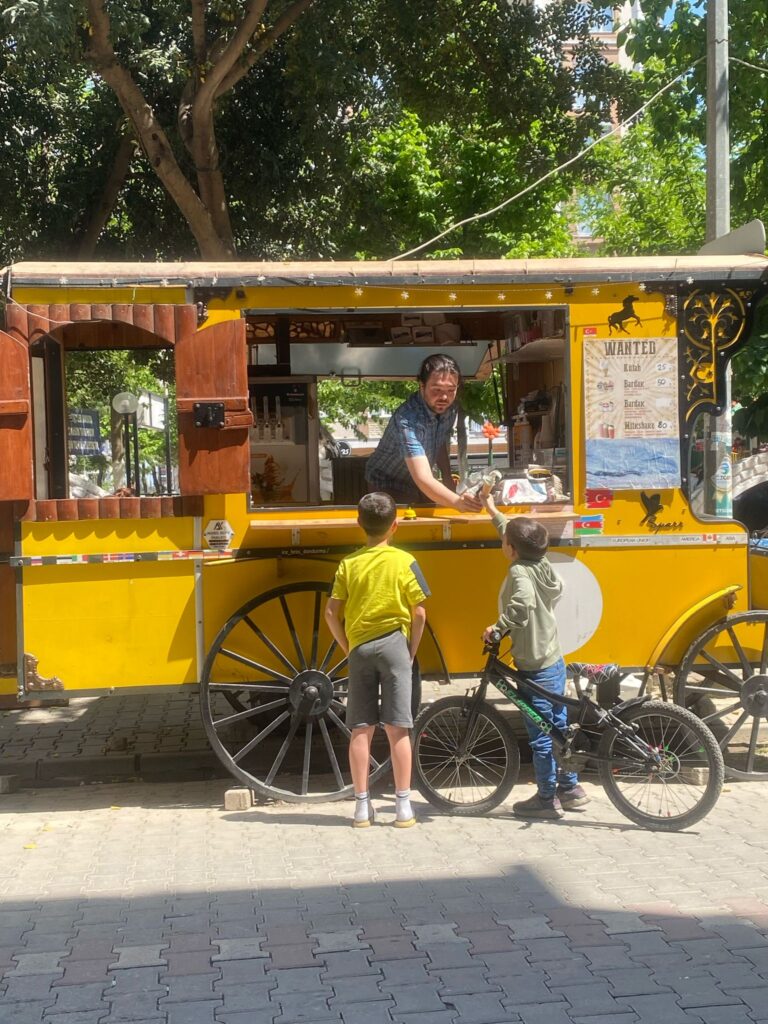 Yine özel bir imalat olan dondurma makinesi ile sarı faytonun içerisinde günlük yaptığı dondurmaları müşterileriyle buluşturmanın keyfini yaşayan Süleyman Oktay’ın en büyük yardımcısı oğlu Muhammed Ubed Oktay. Baba oğul Cumhuriyet mahallesi Atatürk parkı yanında bulunan sarı faytonla İncirliova’ya renk katmaya devam etmekteler.