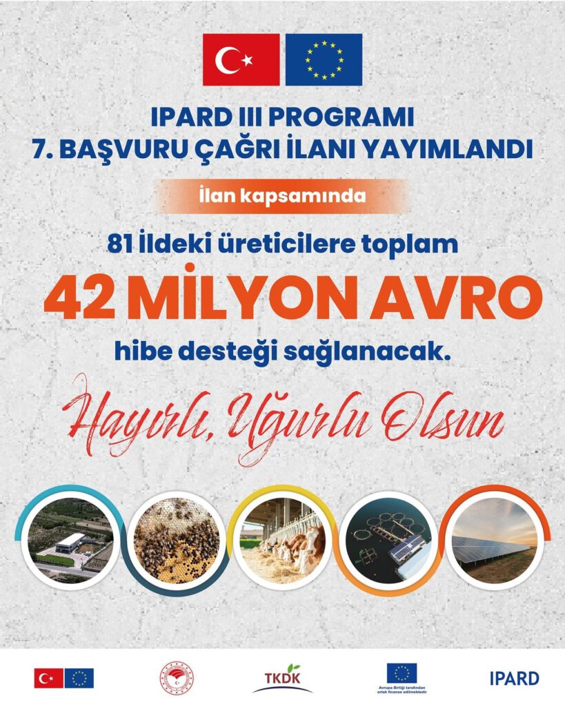 Tarım ve Orman Bakanlığı’na bağlı Tarım ve Kırsal Kalkınmayı Destekleme Kurumu (TKDK), IPARD III Programı kapsamında Türkiye genelinde 42 milyon avroluk yeni hibe çağrısını 30 Haziran 2025’te ilan etti.